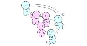 トップ画像。人に振り回されて、あちこち動いてしまっているイラスト